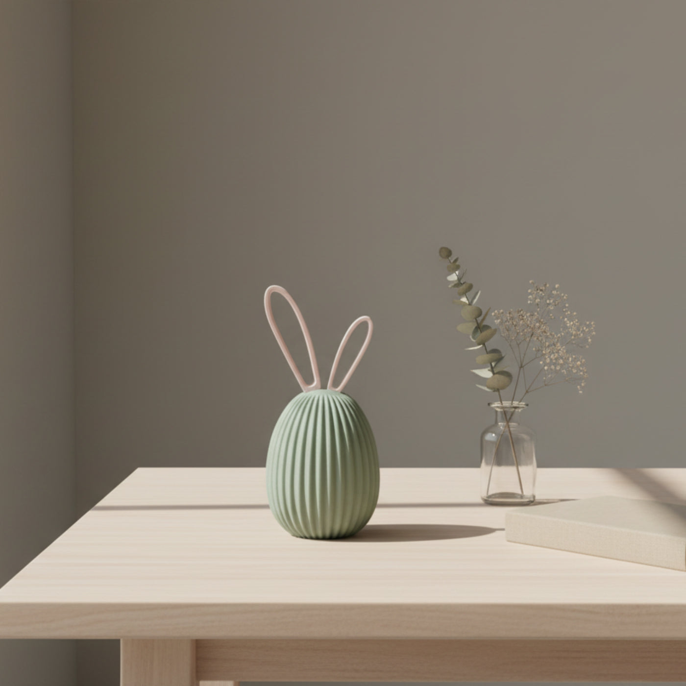 Das Osterei Paula überzeugt durch sein modernes, skandinavisches Design und ein liebevolles Detail: steckbare Hasenohren.