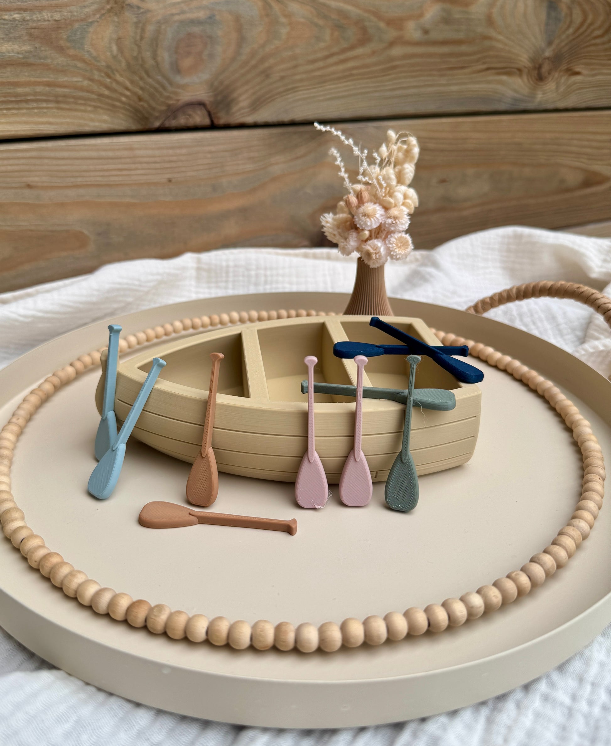 Diese liebevoll gestalteten Mini-Paddel aus PLA sind das perfekte Zubehör für kleine Dekoszenen, beispielsweise in Kombination mit unserem Deko-Boot. Die zarten Farben – von pastelligem Rosa bis zu kräftigem Blau – bringen einen Hauch von Sommer und Abenteuerlust ins Spiel. Ideal für maritime Arrangements, DIY-Projekte oder als detailverliebte Ergänzung zu unseren Silikonformen.