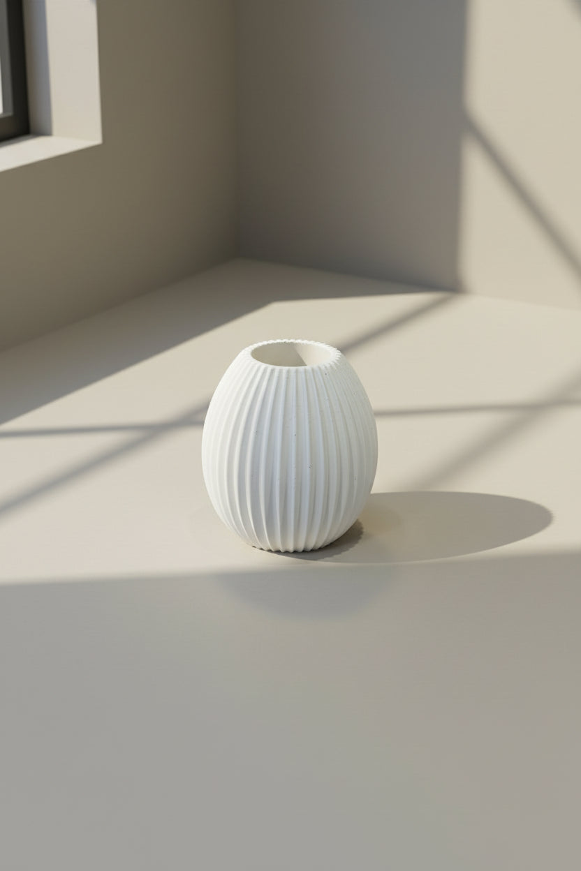 Diese hochwertige Silikonform ermöglicht die Herstellung eines Osterei mit klarer, vertikaler Rillenstruktur und einer Öffnung an der Oberseite. Das Design ist bewusst schlicht gehalten und orientiert sich an einer ruhigen, skandinavischen Formensprache.