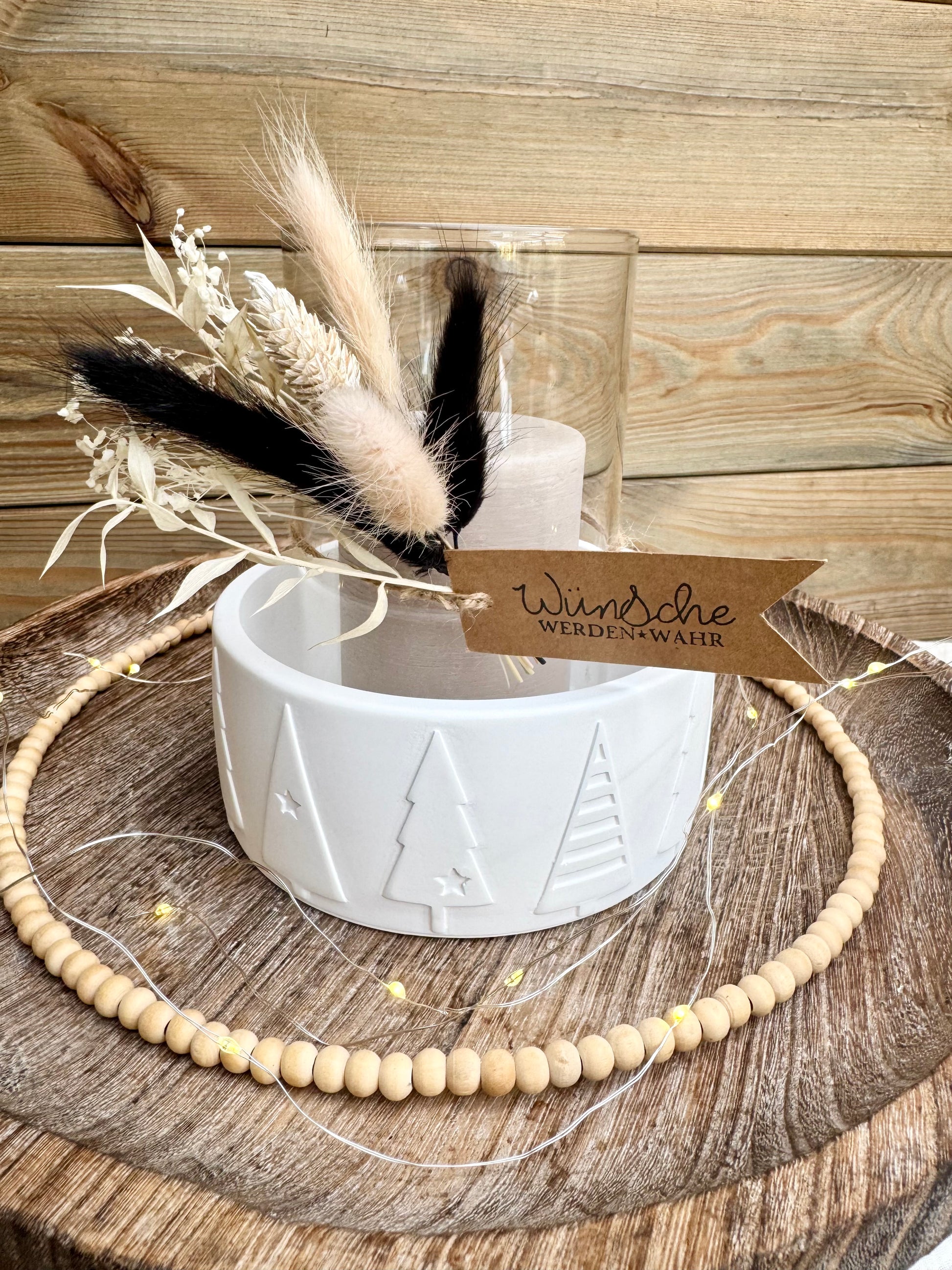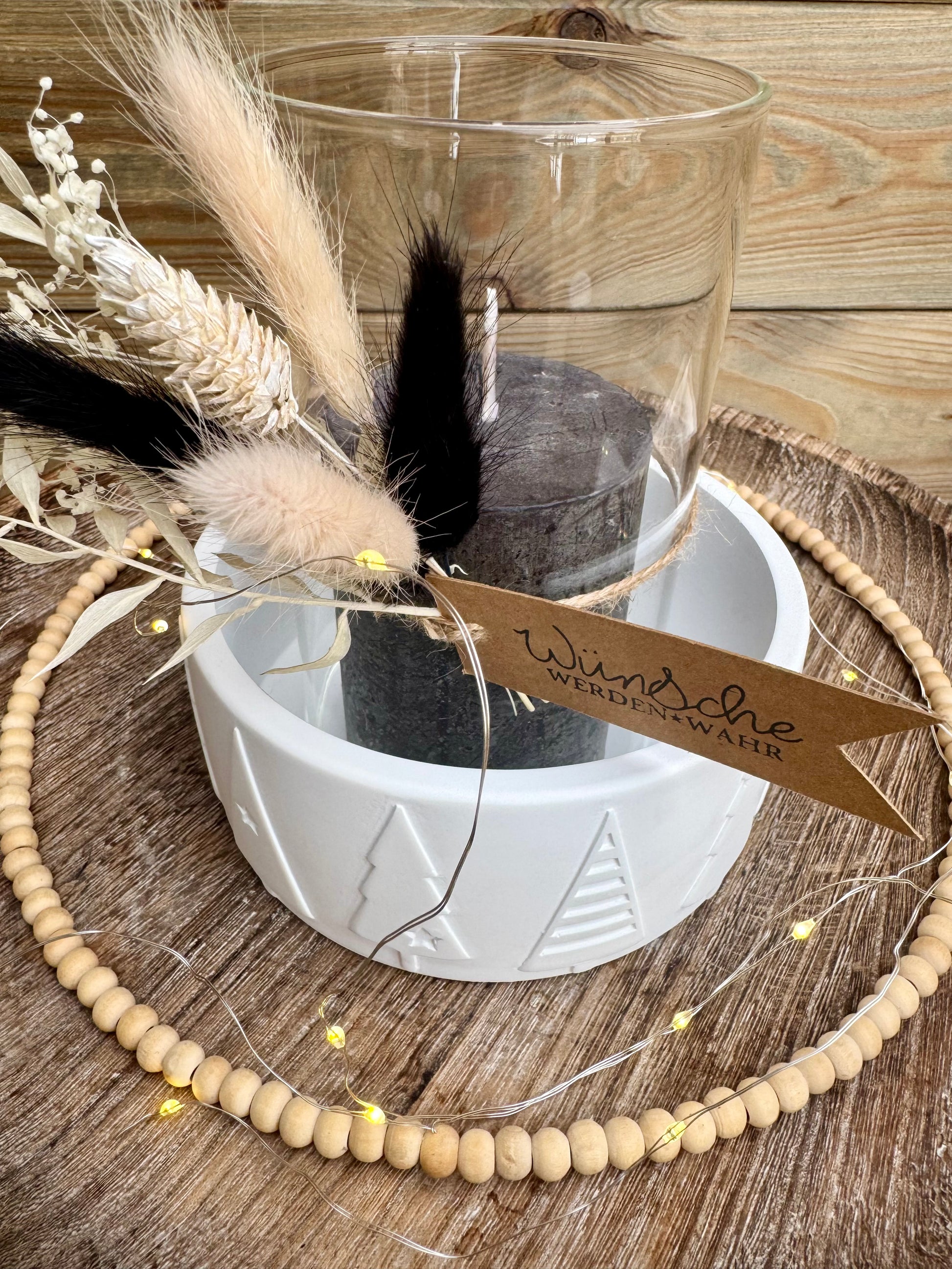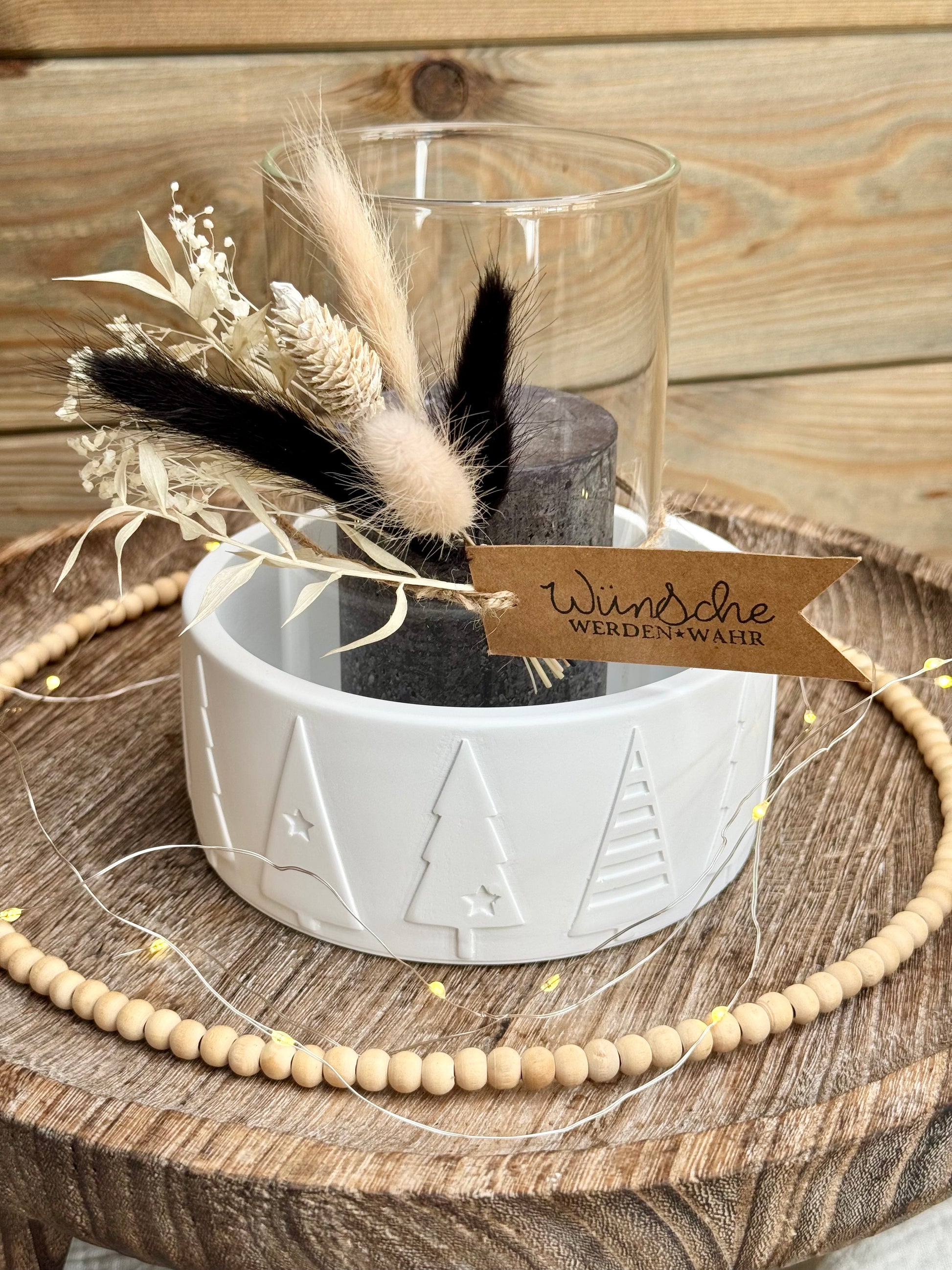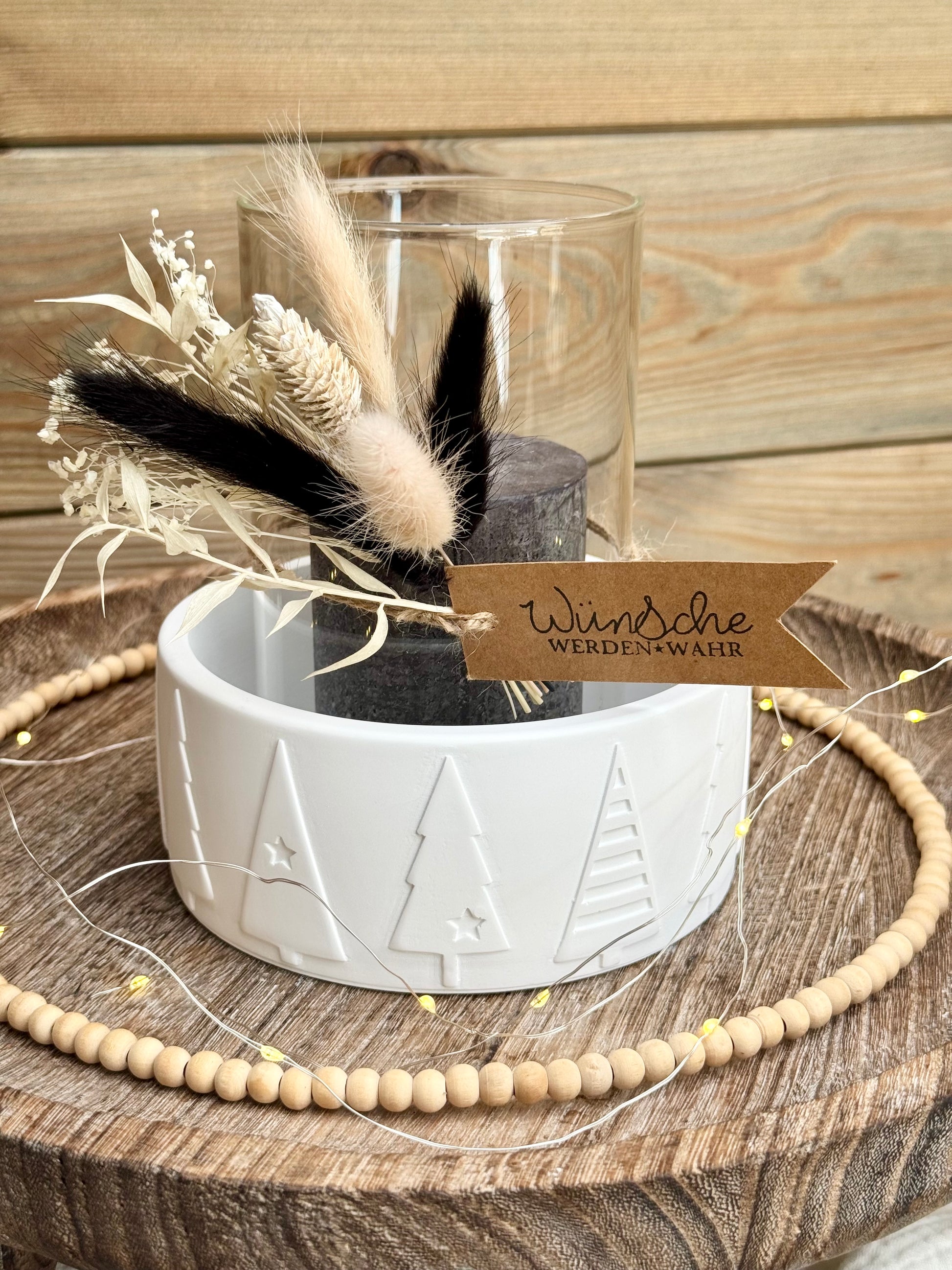 Handgemachtes Deko-Windlicht – stilvolle Schale mit Tannenbäumen