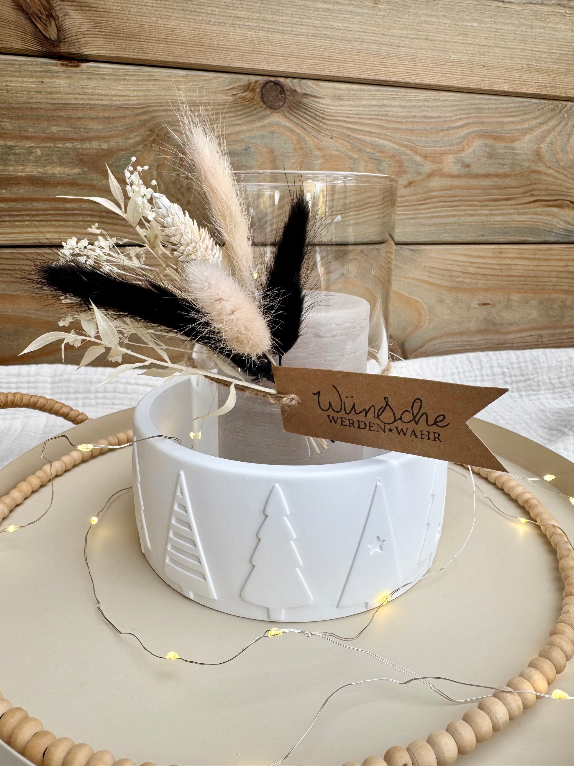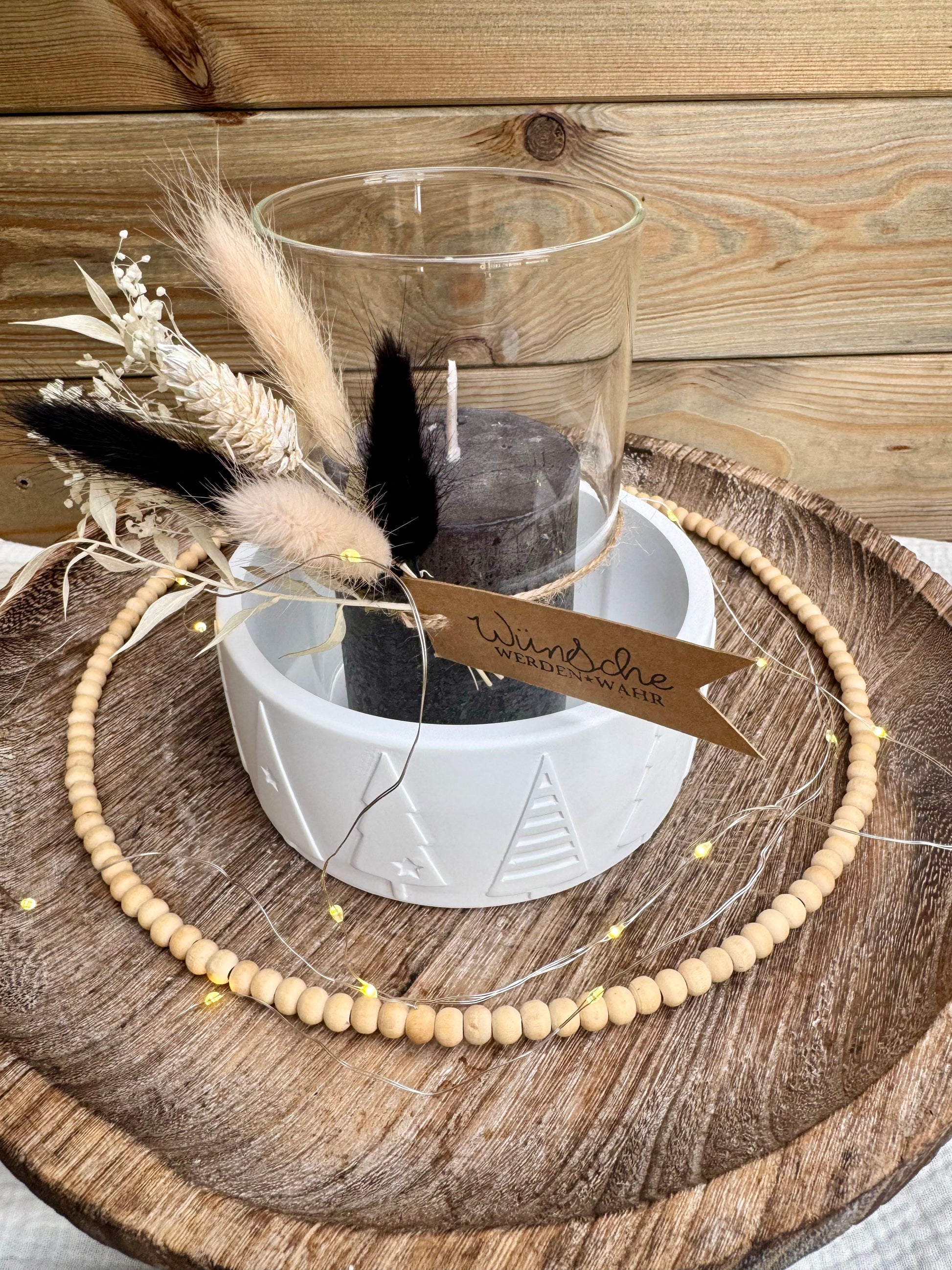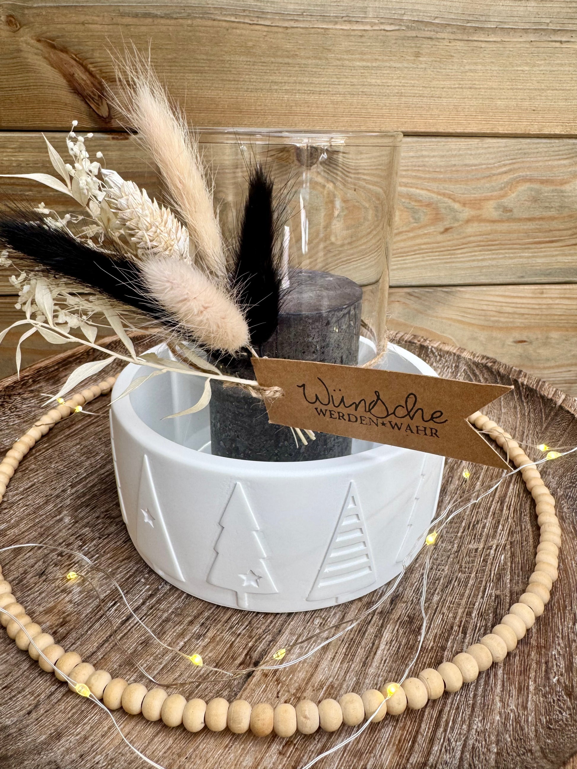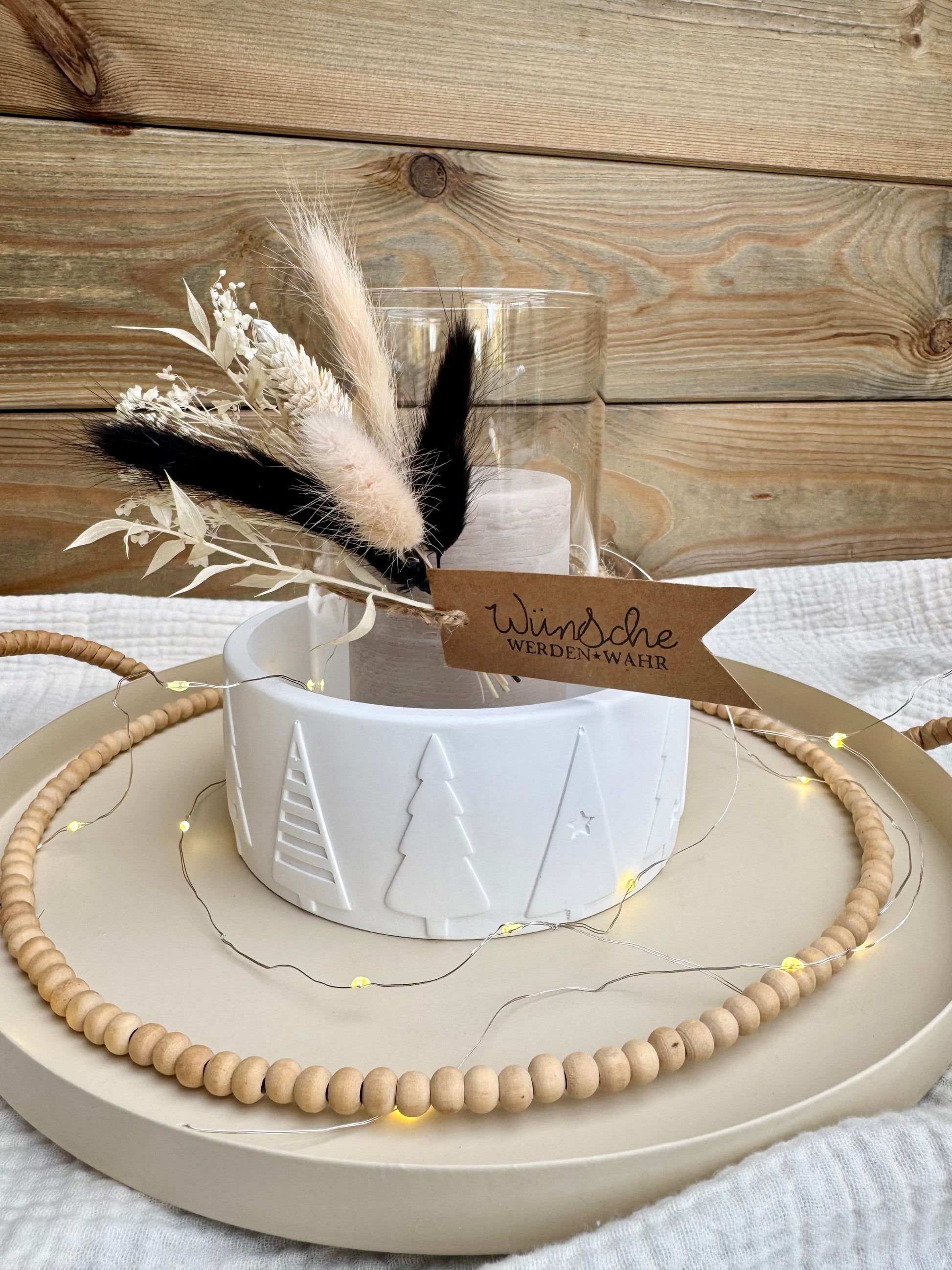 Handgemachtes Deko-Windlicht – stilvolle Schale mit Tannenbäumen