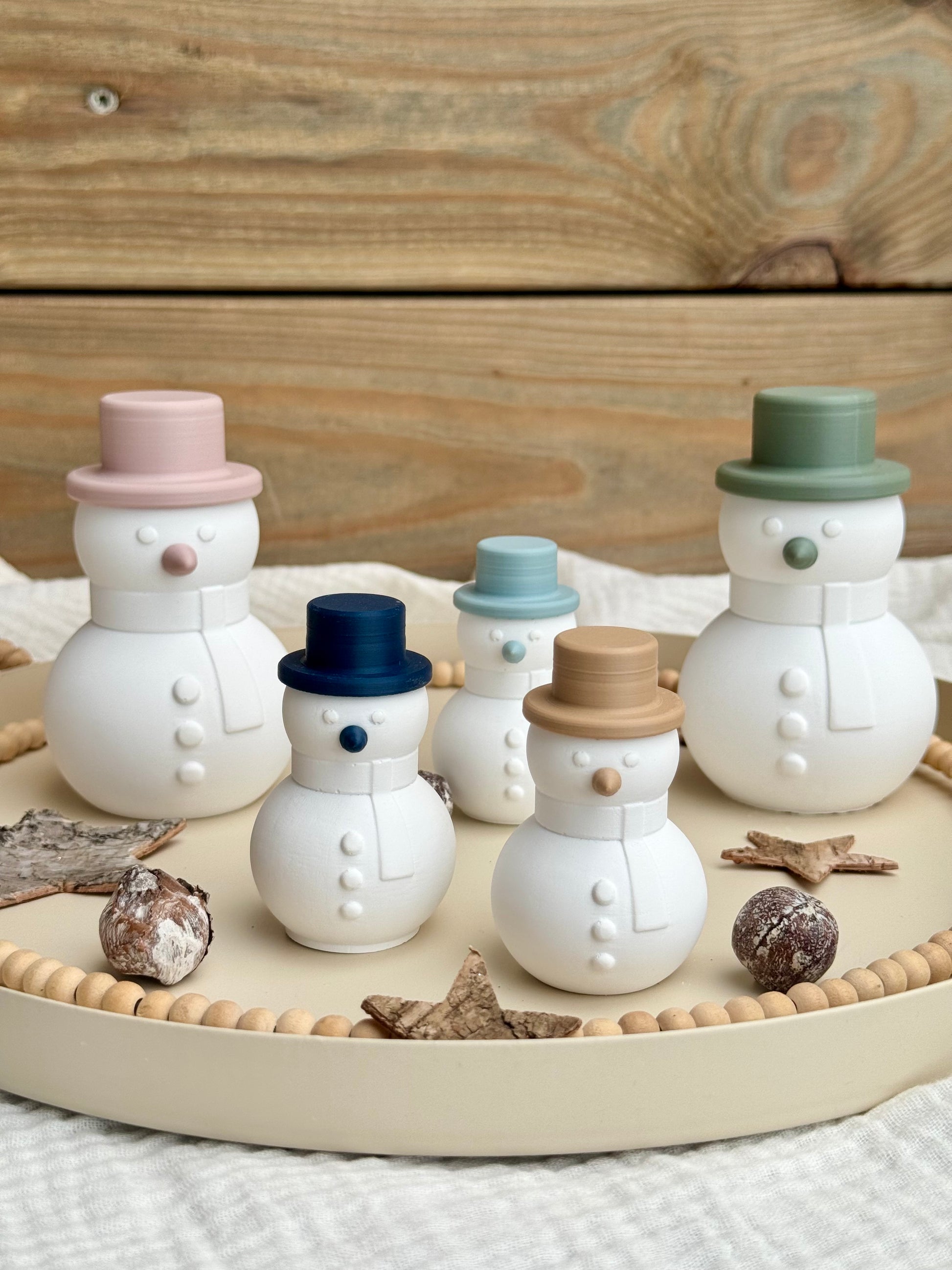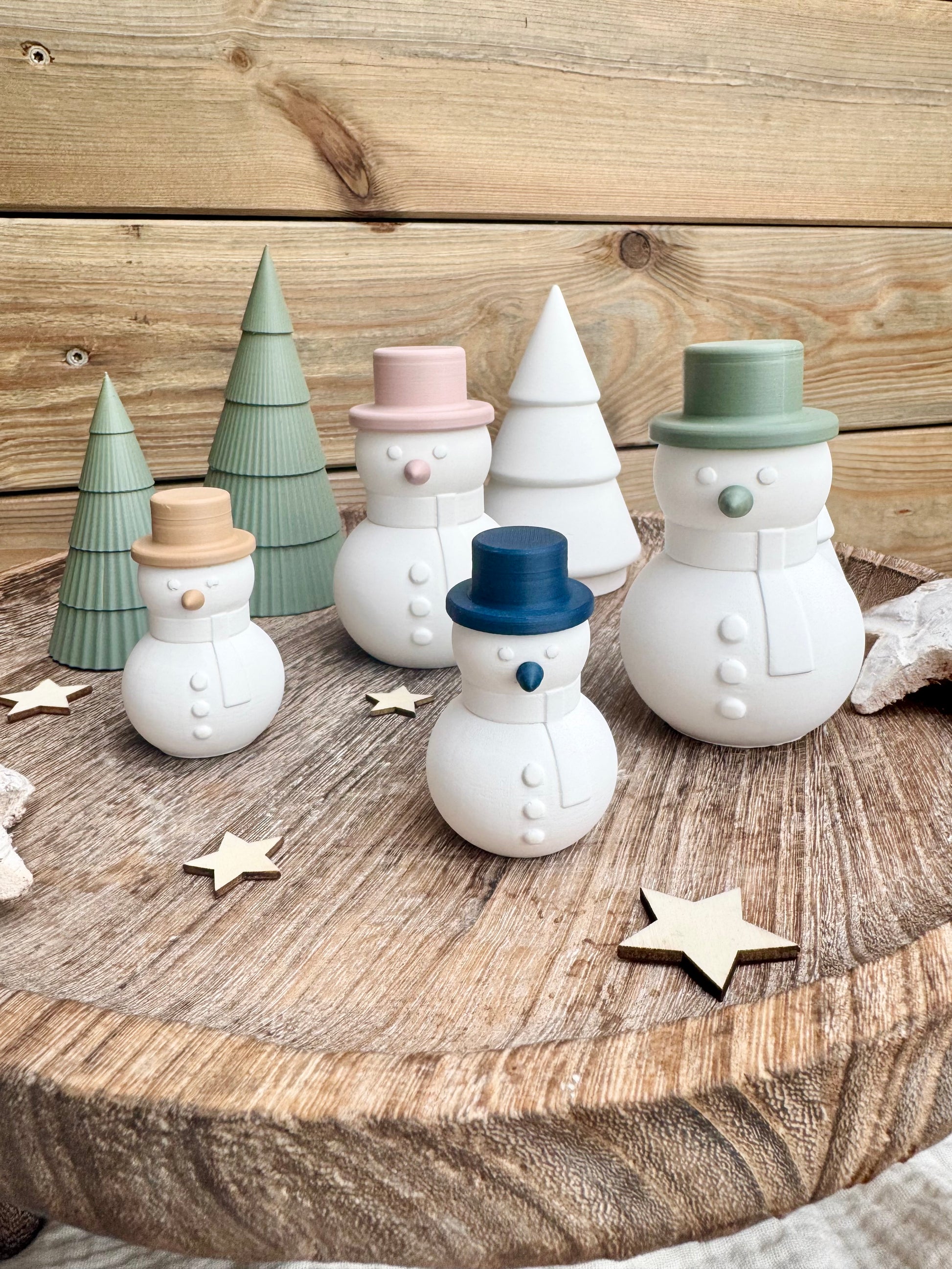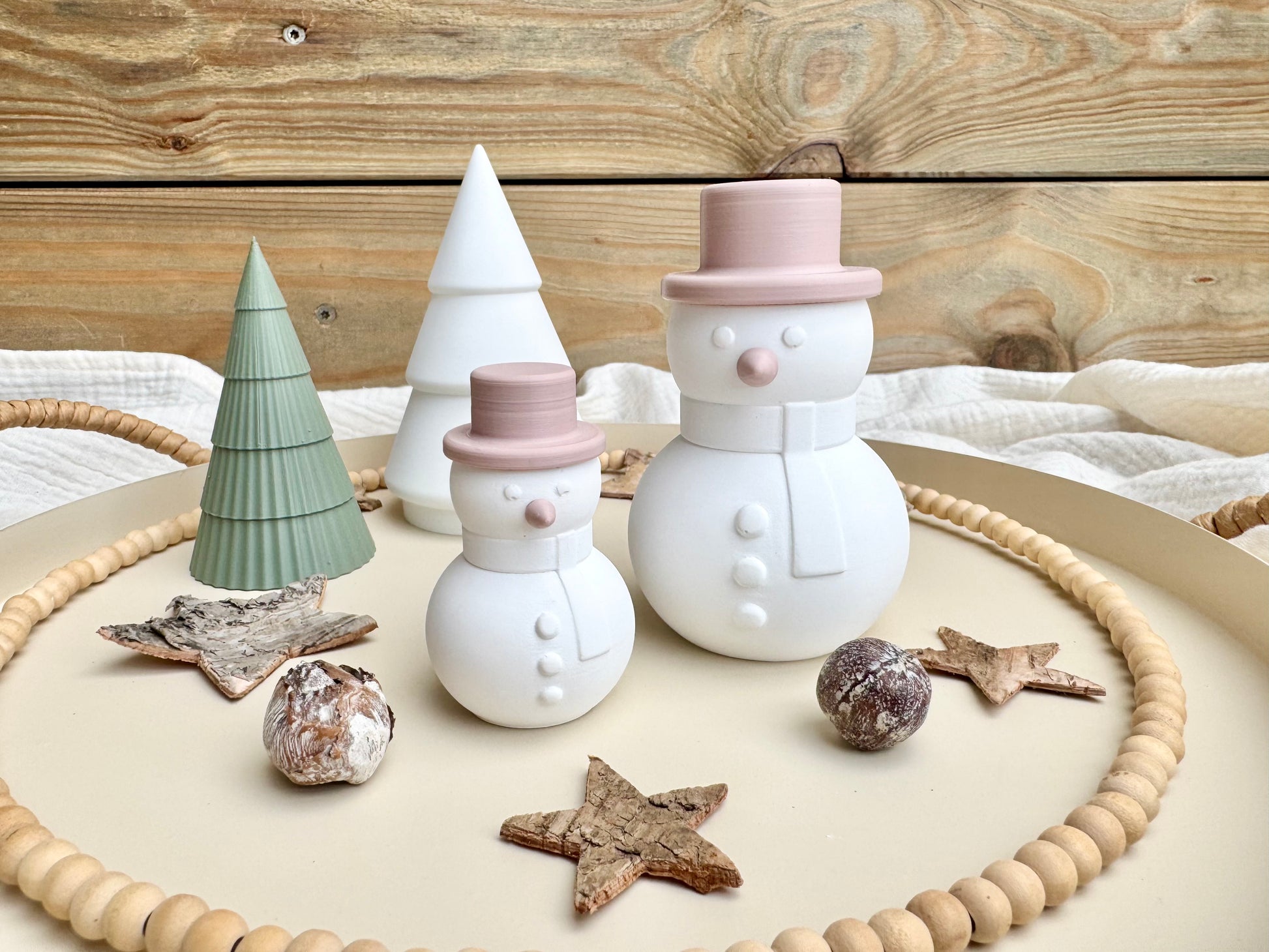 Ob einzeln, im Set oder als niedliche Schneemann-Familie – diese Form bringt winterliche Freude auf jeden Tisch, jedes Regal und jede Fensterbank.