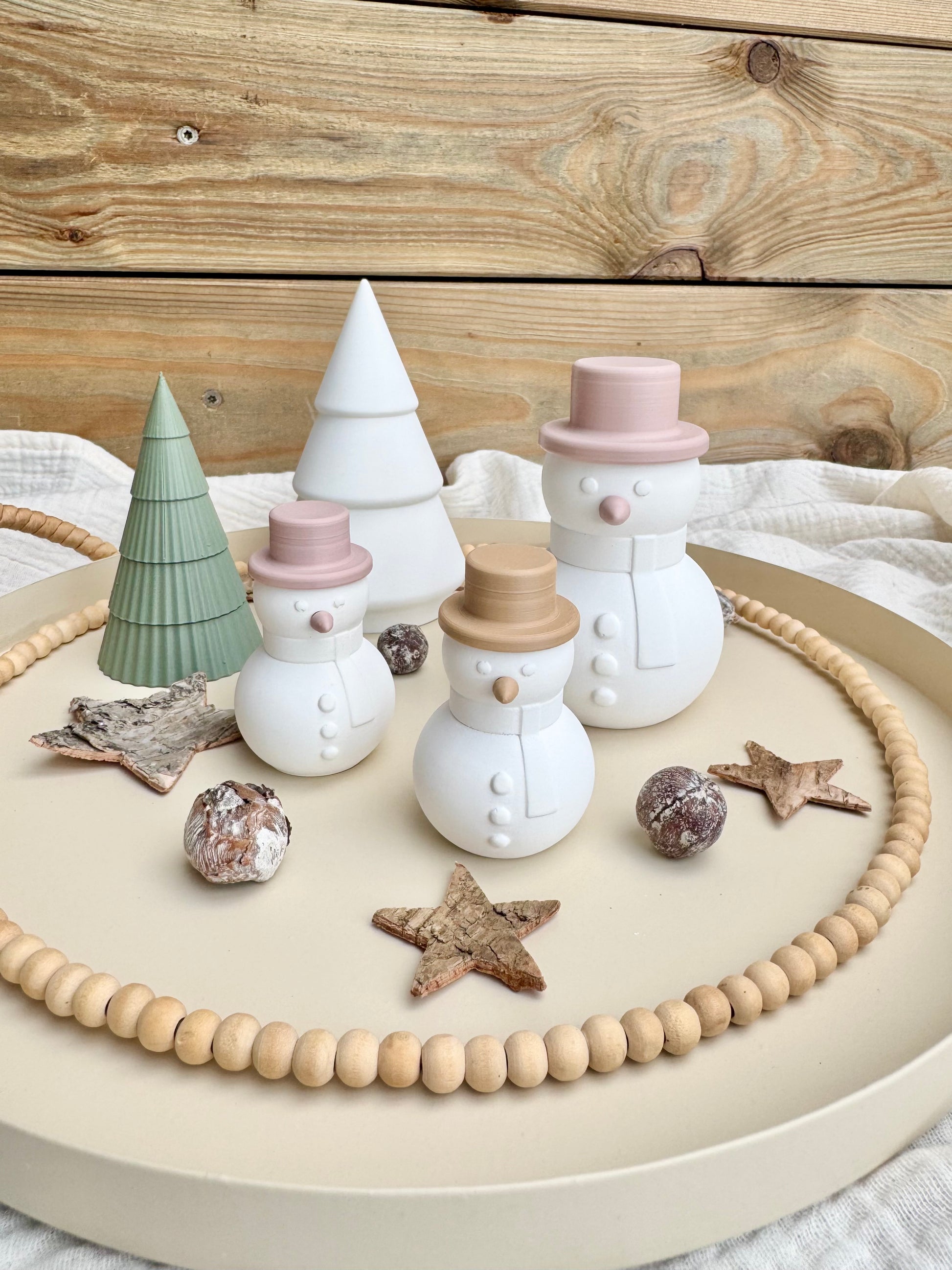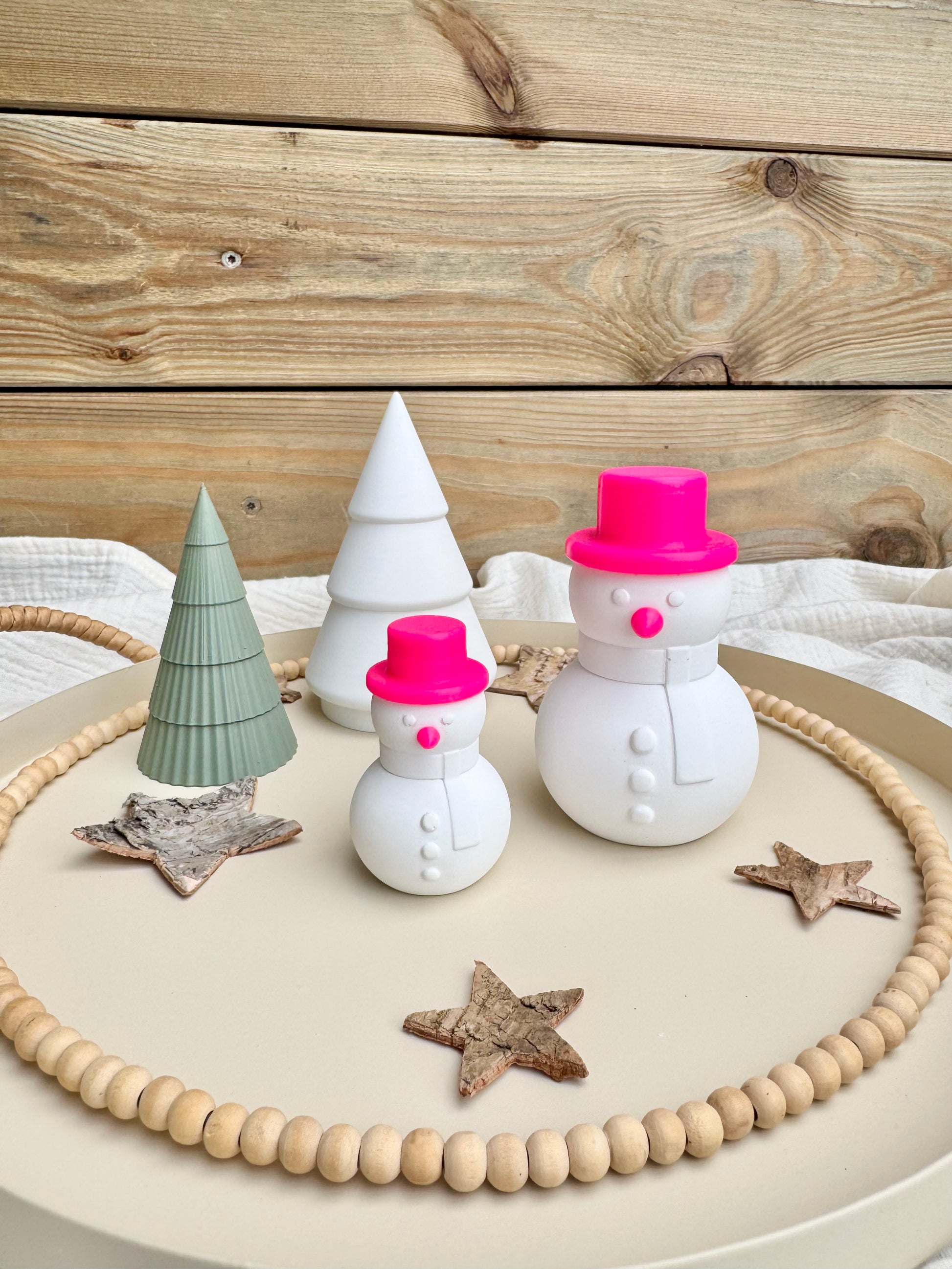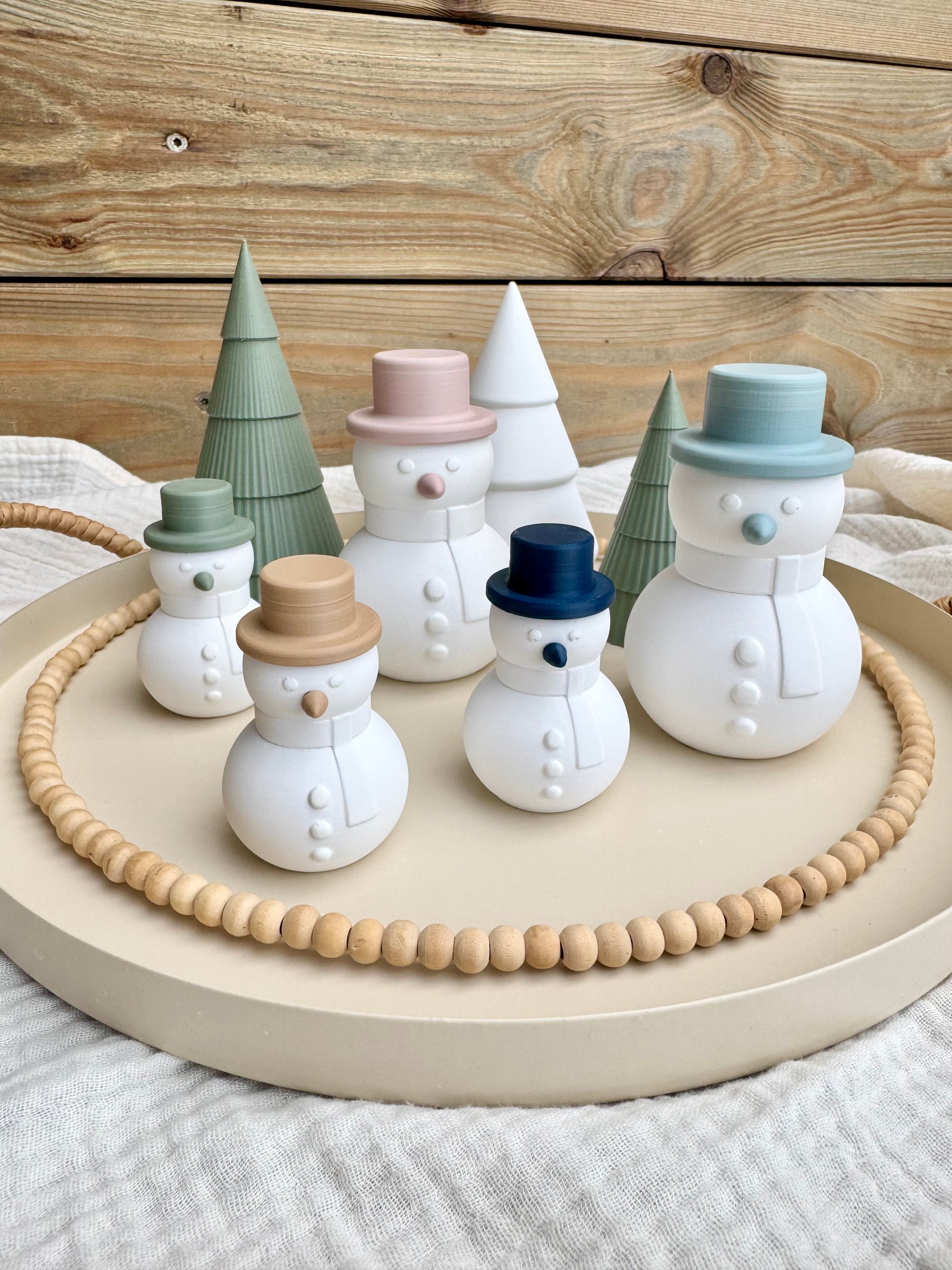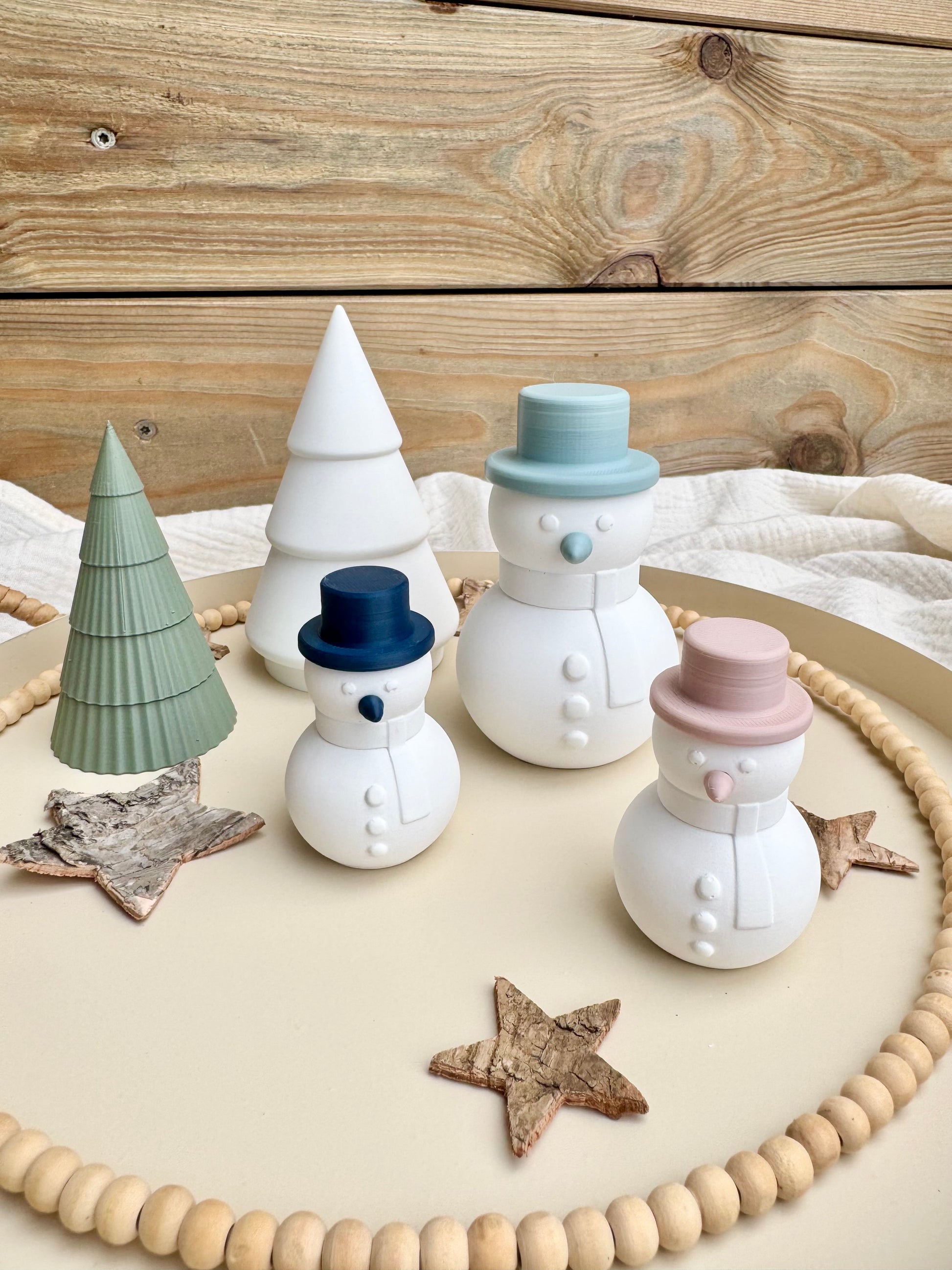 Ob einzeln, im Set oder als niedliche Schneemann-Familie – diese Form bringt winterliche Freude auf jeden Tisch, jedes Regal und jede Fensterbank.
