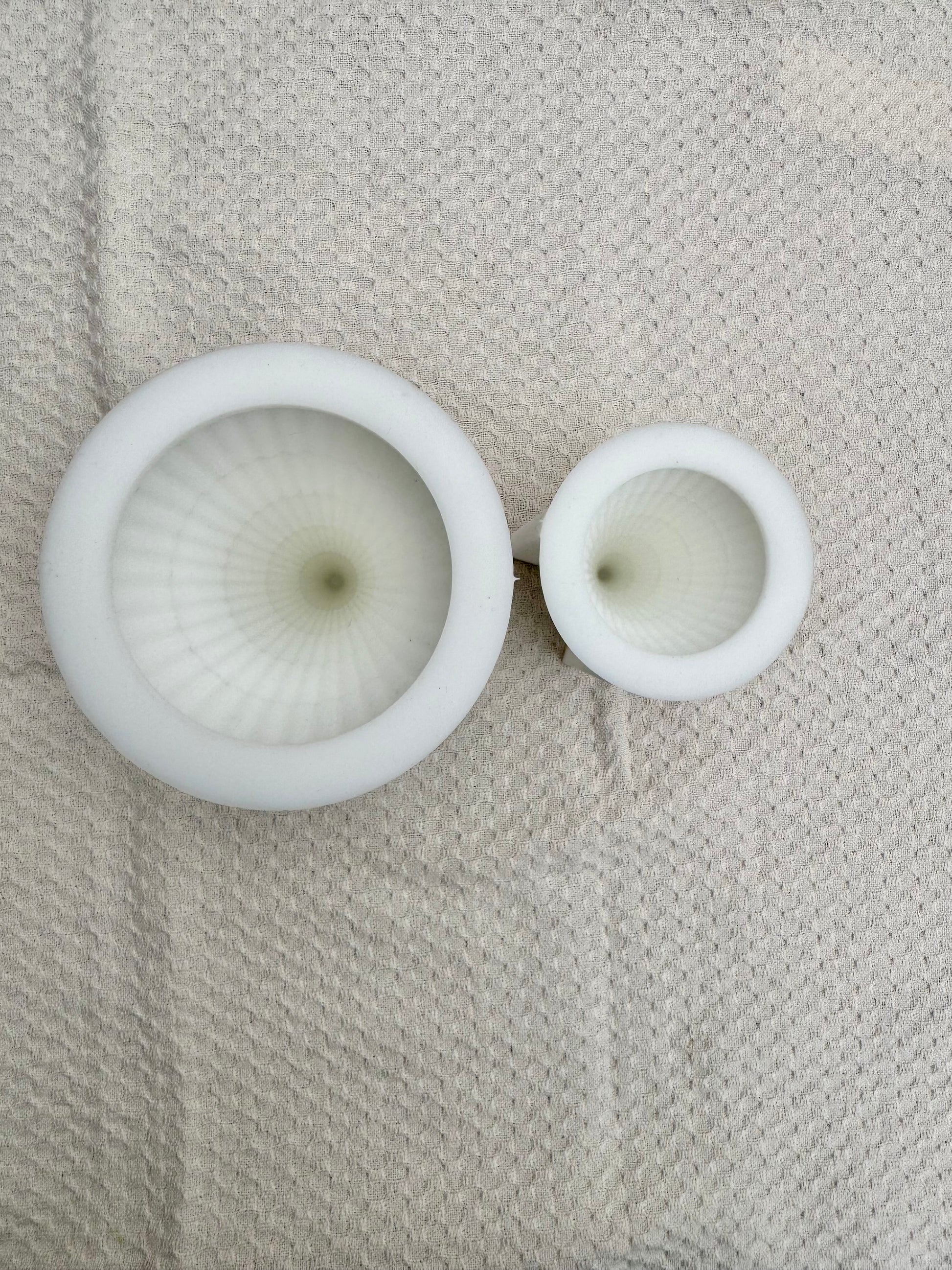 Die Formen nur bis zum innersten Rand gießen. Nicht ganz voll.