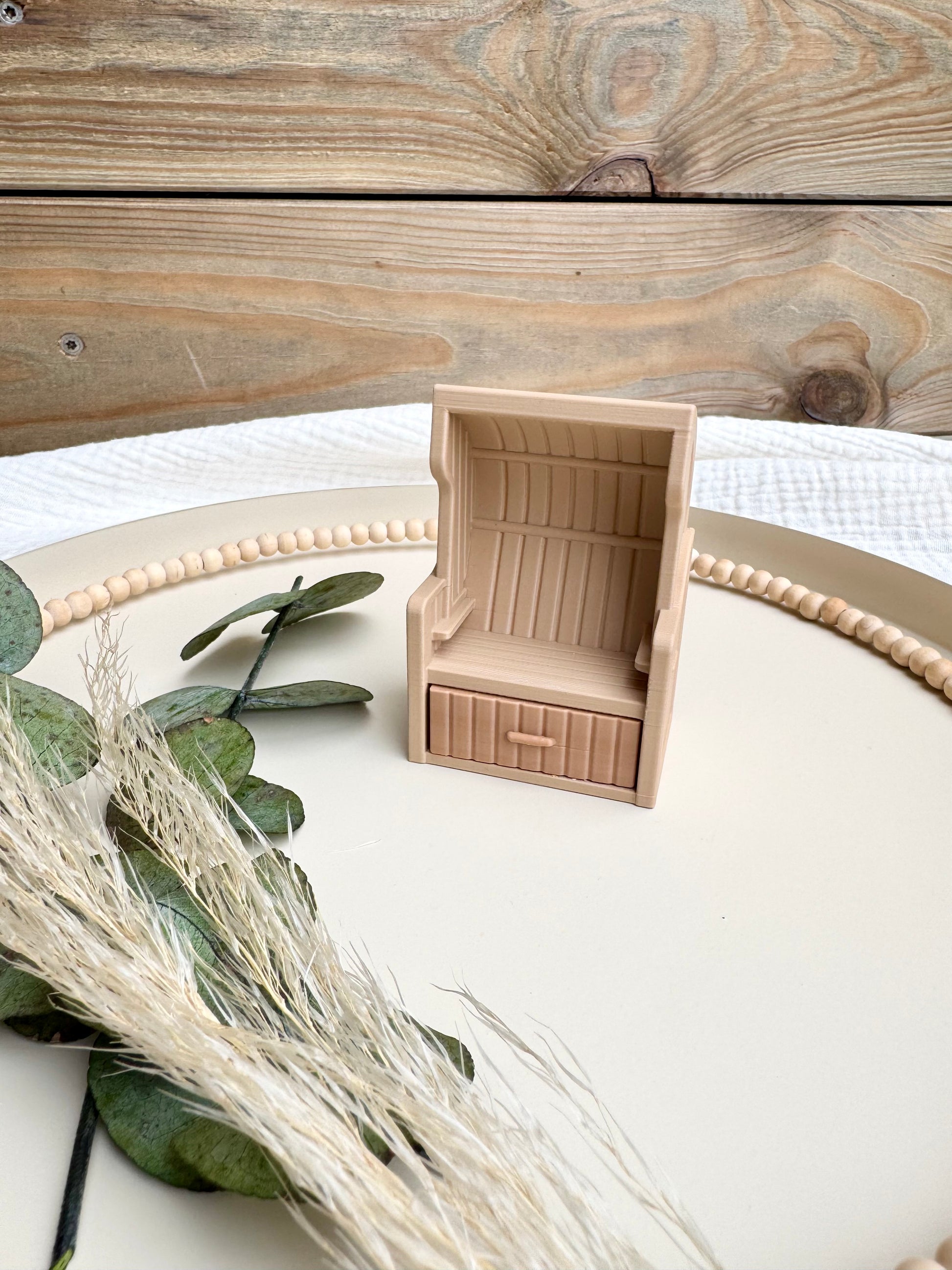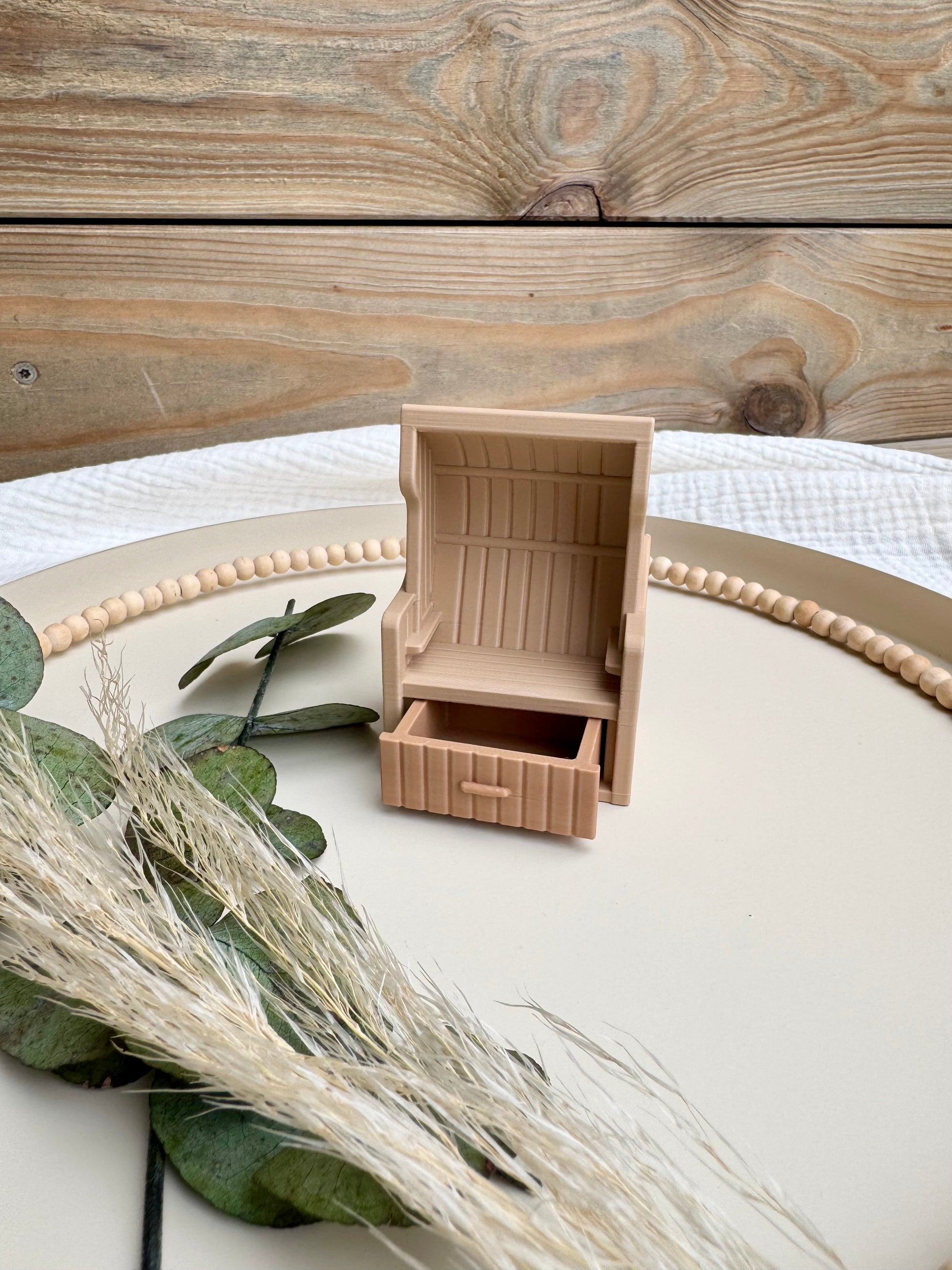 Diese detailverliebte Strandkorb-Miniatur im klassischen Design ist als digitale STL-Datei erhältlich und eignet sich perfekt für den 3D-Druck.