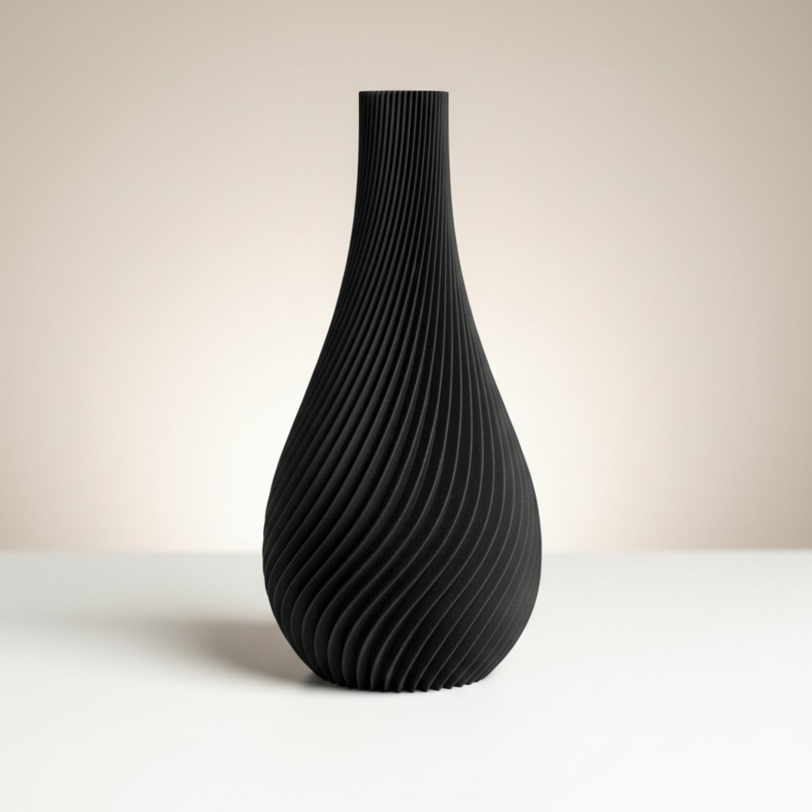 Die Kombination aus ruhiger Farbwelt, mattem Finish und dynamischer Strukturlinie macht diese Vase zu einem besonderen Designobjekt in deinem Zuhause.