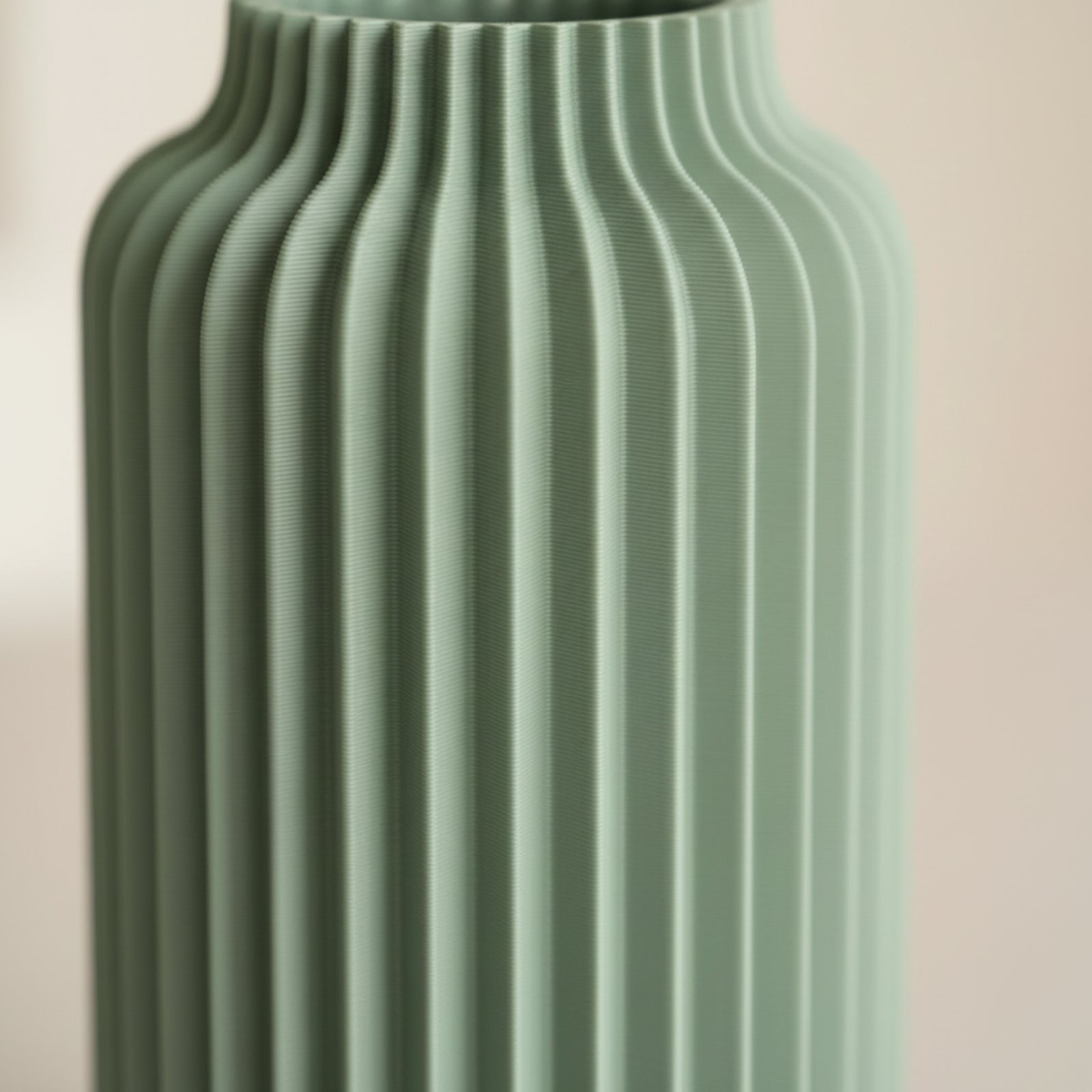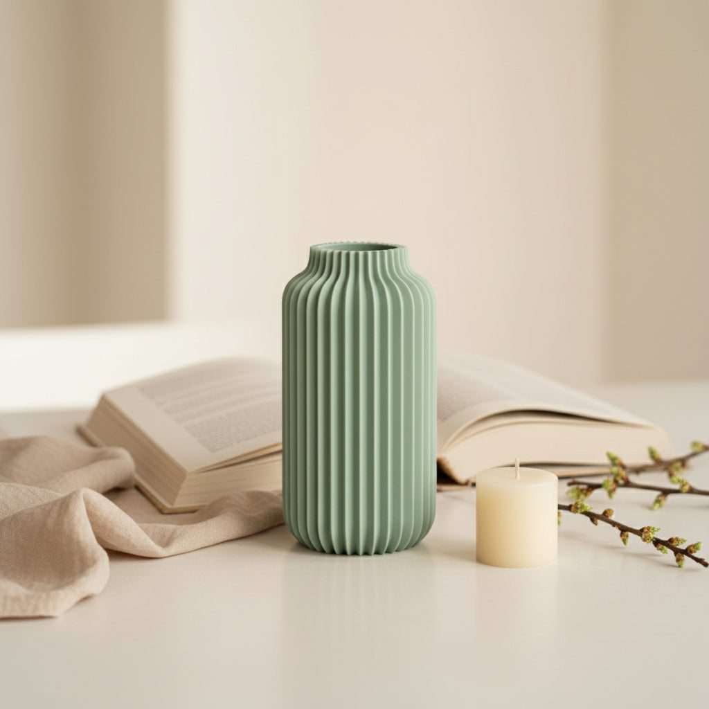 Diese moderne 3D-gedruckte Vase überzeugt durch ihr geradliniges Design und die markante vertikale Struktur. Die klar definierten Rillen verleihen der Vase eine elegante Form und erzeugen ein harmonisches Spiel aus Licht und Schatten. Das matte Finish lässt sie besonders hochwertig wirken und macht sie zu einem vielseitigen Dekoelement für jeden Wohnstil.